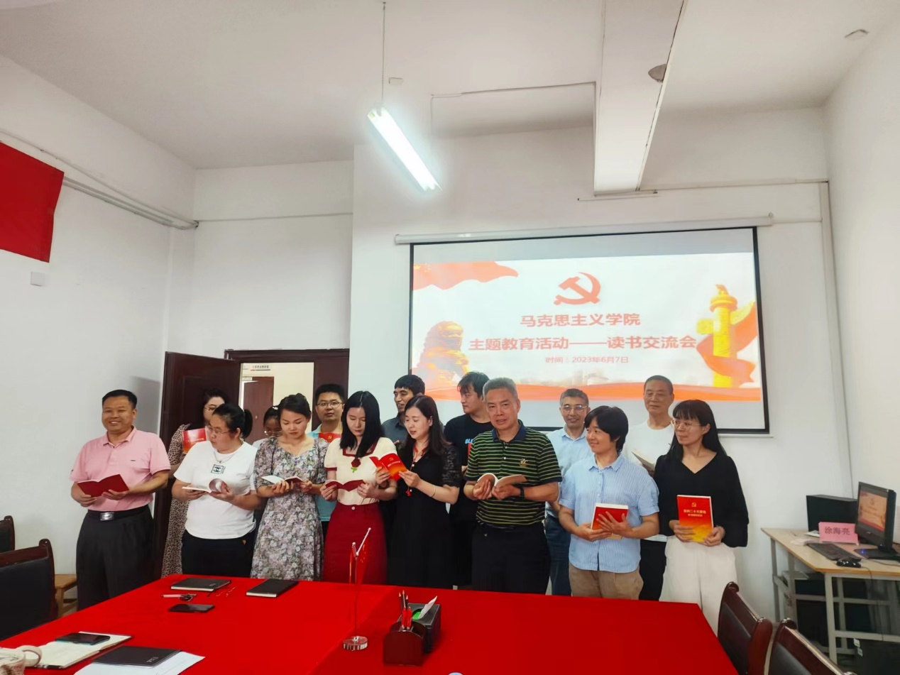 為進一步深刻領(lǐng)會習(xí)近平新時代中國特色社會主義思想的豐富內(nèi)涵與核心要義,將學(xué)懂弄通習(xí)近平新時代中國特色社會主義思想作為政治責(zé)任、精神追求和自覺習(xí)慣,6月7日下午,馬克思主義學(xué)院第一黨支部在教學(xué)樓1511黨員活動室舉行黨員讀書分享會,全體教師黨員參加。活動主要內(nèi)容為黨員代表分享主題教育讀書心得。