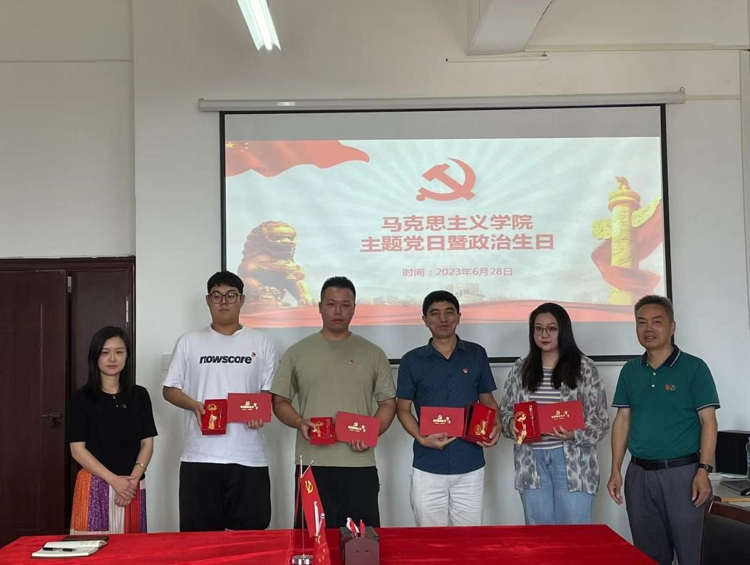 為深入推進(jìn)“思想奠基,黨性塑造”工程,增強(qiáng)黨員的榮譽(yù)感和責(zé)任感,激發(fā)黨員的工作積極性、主動(dòng)性和創(chuàng)造性。6月28日下午,馬克思主義學(xué)院第一、第二黨支部在1507黨員活動(dòng)室開展了“主題黨日暨黨員政治生日”活動(dòng),為本月過生日的黨員舉行“慶生”活動(dòng)。本次活動(dòng)由學(xué)院第二支部書記主持,馬克思主義學(xué)院第一、第二黨支部全體黨員參會(huì)。