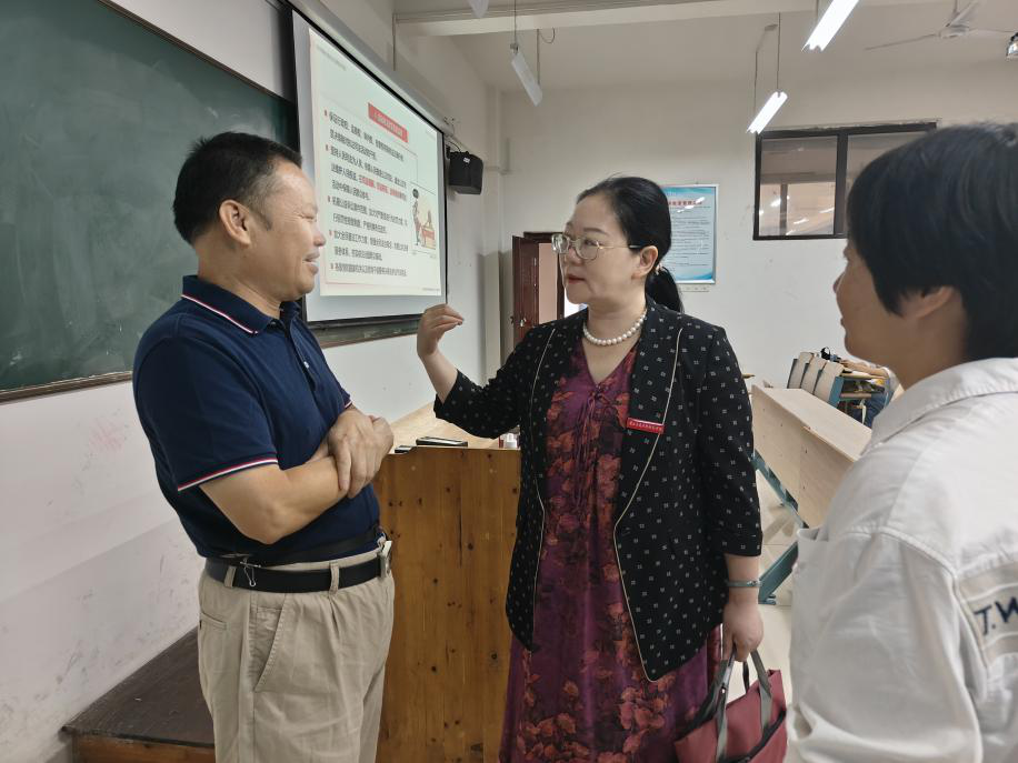 聽課中,胡曉娥一邊認真記錄課程內(nèi)容,一邊仔細觀察覺照教師的授課狀態(tài)和學(xué)生的聽課情況。課后,她充分肯定了師生課堂表現(xiàn),并就思政課教學(xué)如何創(chuàng)新方式方法,提高課程教學(xué)質(zhì)量與授課教師進行了互動交流。