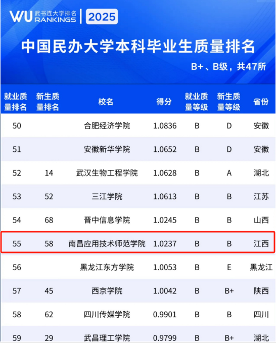 喜報 | 南昌應(yīng)用技術(shù)師范學(xué)院榮膺全國民辦大學(xué)畢業(yè)生質(zhì)量 55 強(qiáng),江西第二