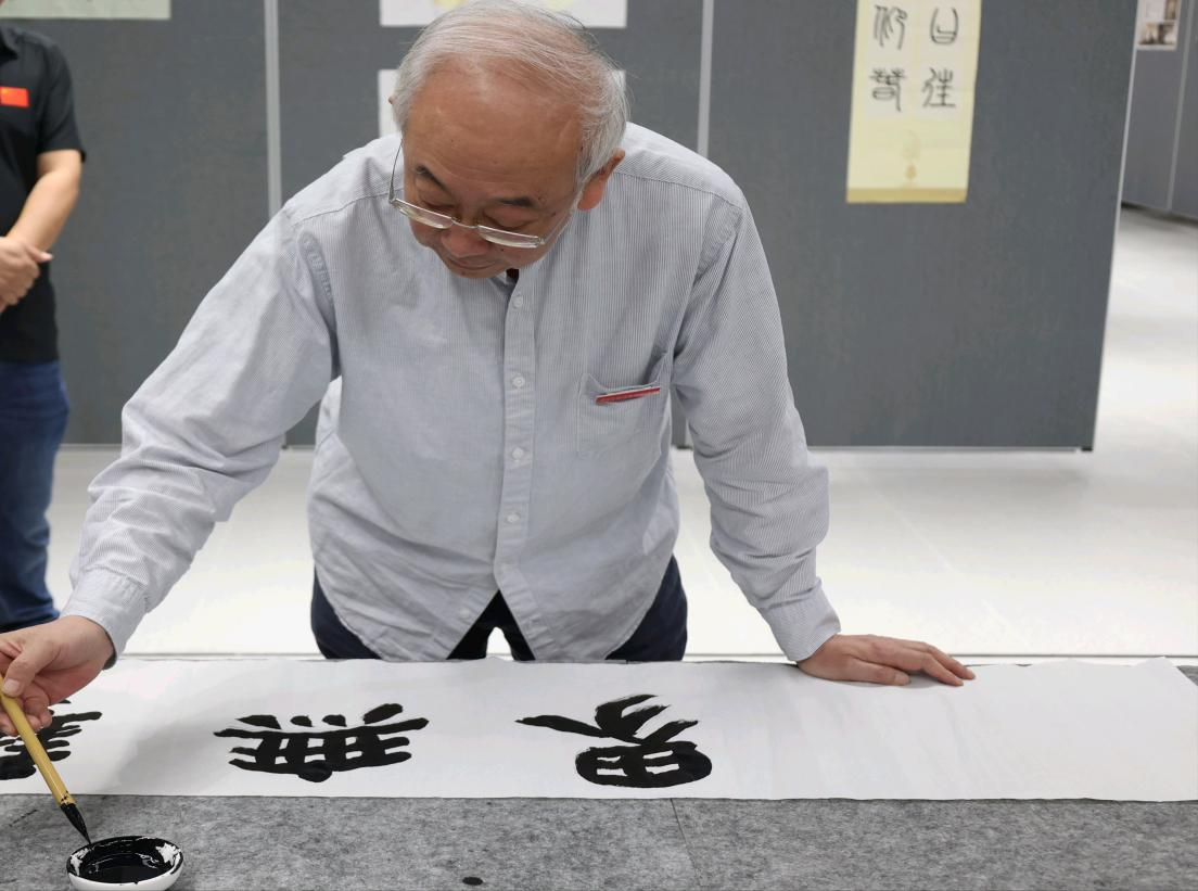 陶也青宣布展覽開幕。在學院教師的引導下,陶也青一行參觀了展覽,并就學院專業(yè)建設、課程建設、師資隊伍能力提升、學生培養(yǎng)做出指導。參觀過程中,陶也青現(xiàn)場揮毫,題寫了“藝無界”、“藝術人生”書法作品,勉勵學院不斷改進教育教學方法,提升人才培養(yǎng)質量。