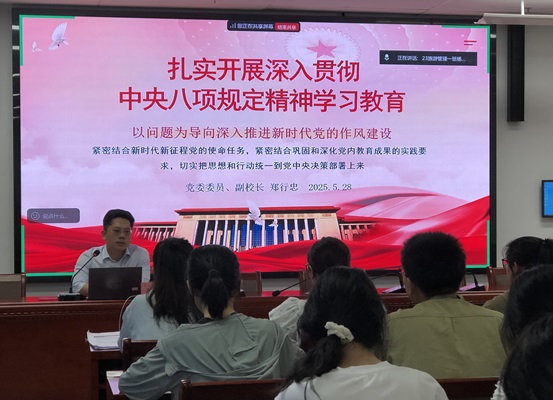 校黨委委員、副校長鄭行忠圍繞《扎實(shí)開展深入貫徹中央八項(xiàng)規(guī)定精神學(xué)習(xí)教育》進(jìn)行專題授課,從“開展學(xué)習(xí)教育的重大意義”出發(fā),深刻剖析了 “四風(fēng)” 問題的頑固性與復(fù)雜性,詳細(xì)解讀了中央八項(xiàng)規(guī)定精神內(nèi)涵與意義,警示學(xué)員們要時(shí)刻保持警醒,嚴(yán)守黨的紀(jì)律,樹立良好形象。他強(qiáng)調(diào),大家要深入學(xué)習(xí)習(xí)近平總書記關(guān)于加強(qiáng)黨的作風(fēng)建設(shè)的重要論述,深刻領(lǐng)悟中央八項(xiàng)規(guī)定及其實(shí)施細(xì)則精神與黨的作風(fēng)建設(shè)的辯證關(guān)系,樹牢紀(jì)律意識(shí),強(qiáng)化作風(fēng)建設(shè)。