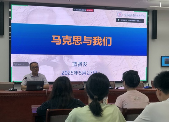 校黨委副書記、紀(jì)委書記藍(lán)賢發(fā)以《馬克思與我們》為題,以“馬克思成長軌跡”為切入點(diǎn),詳細(xì)梳理了馬克思主義中國化的發(fā)展脈絡(luò),深入剖析了馬克思主義對中國革命、建設(shè)和改革的重要指導(dǎo)意義,讓大家對馬克思主義有了更全面、更深入的理解。他勉勵(lì)學(xué)員們“多讀書,才能看到世界之外的世界”,要將馬克思主義理論學(xué)習(xí)與實(shí)踐結(jié)合,用經(jīng)典理論涵養(yǎng)正氣、淬煉思想、升華境界、指導(dǎo)實(shí)踐。