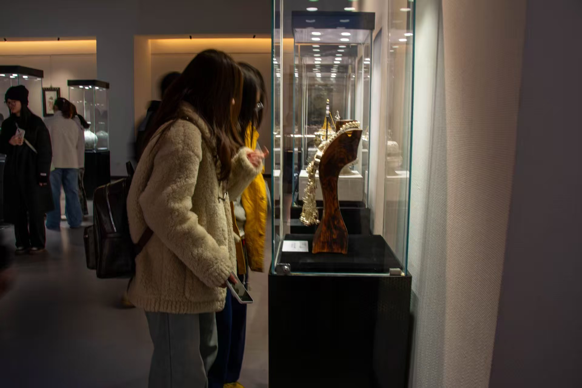 參觀過程中,學(xué)員們循著展覽脈絡(luò),逐一駐足欣賞古樸典雅的陶瓷器皿、瑰麗神秘的漆藝珍品、巧奪天工的雕刻佳作與精美絕倫的編織刺繡,不時(shí)和其他參觀者交流探討:時(shí)而聊作品的制作技巧,時(shí)而談傳統(tǒng)紋樣的文化寓意,時(shí)而品精雕細(xì)琢的工藝細(xì)節(jié),從紋樣里讀中華文化底蘊(yùn),從技藝中感匠人精神堅(jiān)守。也深刻體會(huì)到中華工藝美術(shù)作為連接歷史與當(dāng)代的精神紐帶,所蘊(yùn)含的文化力量與美學(xué)價(jià)值,生動(dòng)詮釋了“格物致知”的哲學(xué)思想與“器以載道”的人文精神。