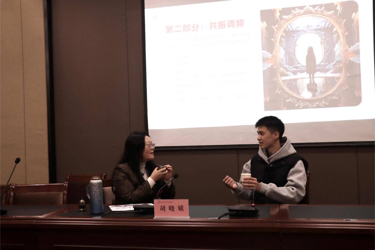 坐在臺上,鄭瀟宇坦誠道:這場互動調(diào)頻結(jié)束時,我的生命能量值已從最初的100躍升至250,完成了從“恐懼陌生”到“敢直面問題”的心態(tài)蛻變。而臺上臺下的師生們在這場真實(shí)的“生命調(diào)頻”中同頻共振,也跟著學(xué)會了如何在“卡點(diǎn)時刻”打破自己的舒適區(qū),自我調(diào)頻力悄然生長。